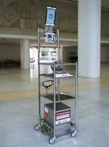 “กระจก” หรือ ระบบสื่อสารทางไกล Telepresence ประกอบด้วยแท็บเล็ต (Rugged Tablet) ที่เชื่อมต่อกันด้วยระบบสื่อสารทางไกล ทำให้เจ้าหน้าที่สามารถพูดคุยกับคนไข้ได้ตลอดเวลาและสะดวกขึ้น ลดความเสี่ยงของการติดเชื้อได้มากขึ้น ส่วนฝั่งของคนไข้ก็ยังสามารถติดต่อขอความช่วยเหลือจากเจ้าหน้าที่ได้ตลอดเวลา ซึ่งจะช่วยลดการใช้อุปกรณ์ทางการแพทย์ เช่น ชุด PPE ถุงมือยาง หน้ากากอนามัย หน้ากาก Face Shield เป็นต้น