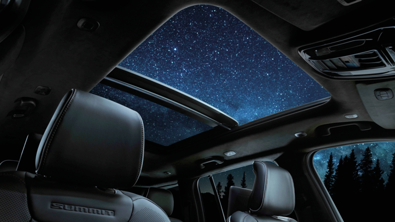 นับเป็นยนตรกรรมที่มาพร้อมนวัตกรรมอันทันสมัย กระจกรอบคันแบบพิเศษ ช่วยลดเสียงรบกวน ด้านหน้าผู้ขับติดตั้งจอแสดงผลอเนกประสงค์แบบทีเอฟที (TFT-Thin Film Transistor) ขนาด 10.25 นิ้ว ความละเอียดระดับ Full HD พร้อมระบบเฮด-อัพดิสเพลย์ แสดงข้อมูลบนกระจกหน้า ขณะที่บริเวณกลางแดชบอร์ดเป็นทัชสกรีนขนาด 10.1 นิ้ว ที่ใช้ระบบปฏิบัติการ ‘Uconnect 5’ รองรับ Android Auto และ Apple Car Play พร้อมเพลิดเพลินกับ ‘McIntosh’ เครื่องเสียงระดับไฮเอนด์ 19 ลำโพง นอกจากนั้นยังได้รับการยกย่องให้เป็นห้องโดยสารที่หรูหรามากสุด เทียบกับรถยนต์กลุ่มเดียวกัน เพราะผ่านการตกแต่งด้วยวัสดุระดับพรีเมียม เบาะคู่หน้าหุ้มหนังแท้ Fine Grain คุณภาพสูง ‘ปาแลร์โม นับปา’ (Palermo Nappa) ปรับทิศทางด้วยไฟฟ้า 12 ตำแหน่ง พร้อมระบบระบายอากาศและฟังก์ชันนวดแผ่นหลัง ตกแต่งตามจุดต่างๆ ด้วยลายไม้วอลนัต พาโนรามิกซันรูฟ 2 ส่วน (Dual-Pane Panoramic Sunroof) ให้ความรู้สึกโปร่งสบาย พร้อมระบบปรับอากาศแบบ 4 โซน