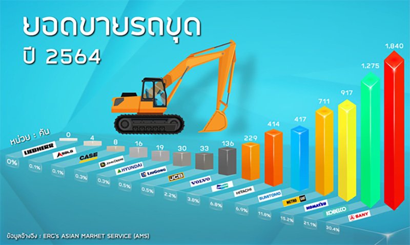 | รถขุด | ยอดขายปี 2563 (คัน) | ยอดขายปี 2564 (คัน) | ยอดขายสูงขึ้น |