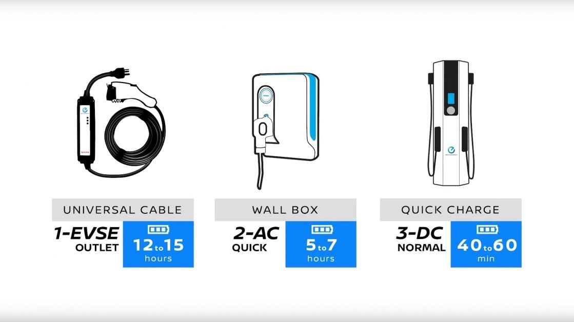 นิสสันแบ่งปันข้อมูลและเคล็ดลับว่าเจ้าของรถยนต์พลังงานไฟฟ้าจะสามารถชาร์จรถยนต์ได้อย่างไร โดยมีตัวเลือกการชาร์จสามตัววิธีหลักๆ สำหรับนิสสัน ลีฟ ตัวอย่าง เช่น การชาร์จจากไฟบ้านปกติ (standard outlet charging) การชาร์จจากอุปกรณ์ชาร์จติดผนัง หรือ wall box charging และการชาร์จแบบเร็วหรือที่เรียกว่า Quick Charge