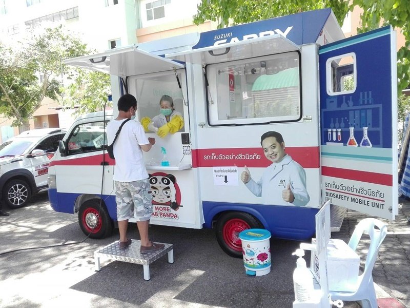 โดยล่าสุดทาง หมอแล็บแพนด้า “ทนพ.ภาคภูมิ เดชหัสดิน” ได้รับการติดต่อจากโรงพยาบาลพหลหลพยุหเสนา จังหวัดกาญจนบุรี ขอให้นำรถ SUZUKI CARRY Biosafety Mobile Unit ออกให้บริการประชาชนเพื่อตรวจหาเชื้อโควิด-19 ในเชิงรุกแบบเคลื่อนที่และไม่มีค่าใช้จ่าย เพื่อแบ่งเบาภาระพร้อมลดความแออัดของประชาชนที่เข้าไปใช้บริการในโรงพยาบาล ตั้งแต่วันที่ 19 -23 เมษายน 2564 ซึ่งผู้จำหน่ายรถยนต์ซูซูกิโดย บริษัท ซูซูกิกาญจนบุรี จำกัด ได้เข้าร่วมสนับสนุนการปฏิบัติงานของเจ้าหน้าที่ในครั้งนี้ตลอดระยะเวลาการให้บริการของหมอแล็บแพนด้า ในพื้นที่ดังกล่าว