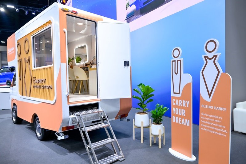 ไฮไลต์สำคัญ คือ การนำรถกระบะบรรทุกอเนกประสงค์ SUZUKI CARRY มาตกแต่งภายใต้แนวคิด Portable Restroom ยกระดับการออกแบบห้องน้ำเคลื่อนที่ให้มีความครบครัน ตอบโจทย์การใช้งานทุกฟังก์ชัน ทั้งห้องอาบน้ำ ห้องแต่งตัว และห้องสุขา โดยดีไซน์ให้มีความเป็นส่วนตัว สะดวกสบาย เหมาะสำหรับกลุ่มลูกค้า VIP หรือเป็นห้องน้ำ ห้องแต่งตัวส่วนตัวสำหรับศิลปิน ดารา นักแสดง ในการออกไปทำงานนอกสถานที่ สอดรับกับจุดเด่นของ SUZUKI CARRY ที่มีขนาดกะทัดรัด สามารถเข้าถึงพื้นที่จำกัดได้ จึงตอบโจทย์ทุกการใช้งานได้อย่างครอบคลุม โดยซูซูกิได้ร่วมมือกับบริษัท บุญถาวร รีเทล คอร์ปอเรชั่น จำกัด (มหาชน) ผู้นำด้านธุรกิจวัสดุตกแต่งบ้านที่ครบครันครอบคลุมหลากหลายแบรนด์ดังทั้งในประเทศและต่างประเทศ ในการจัดวางสุขภัณฑ์ และอุปกรณ์ต่างๆ ในรถ SUZUKI CARRY บนพื้นฐานการใช้งานจริง ทั้งยังมุ่งหวังให้เป็นไอเดียต้นแบบ สร้างแรงบันดาลใจในการทำธุรกิจที่แตกต่าง จุดประกายแนวทางใหม่ให้ผู้ประกอบการ ตอกย้ำแนวคิด “Carry Your Dream เคียงข้างทุกเส้นทางฝัน” ได้อย่างชัดเจน ซึ่งเรามีเป้าหมายที่จะปรับเปลี่ยนรถกระบะบรรทุกให้เป็นรถขนส่งความสุขเคียงข้างทุกเส้นทางฝันทั้งในด้านธุรกิจและการใช้ชีวิตส่วนตัว รวมถึงการช่วยเหลือสังคมเหมาะสมกับการเป็นรถที่ครองใจผู้ประกอบการตัวจริง