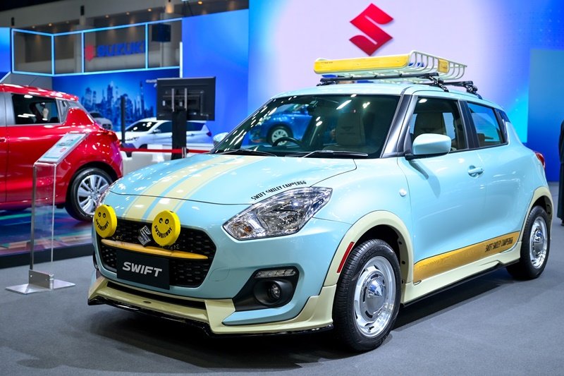 สำหรับรุ่นยอดนิยม SUZUKI SWIFT นำมาตกแต่งในสไตล์ Camping ถูกออกแบบให้ลูกค้านำไปใช้งานได้จริงในชีวิตประจำวัน สามารถบรรทุกสิ่งของบนแร็คหลังคาโดยรับน้ำหนักได้ถึง 50 กิโลกรัม บรรทุกสัมภาระได้สะดวกสบาย มาพร้อมการตกแต่งไฟหน้ารถ Smiley เพื่อเพิ่มแสงสว่างและทัศนวิสัยในเวลากลางคืน และอีกหนึ่งรุ่น เอาใจสายแต่งจากกลุ่มลูกค้าที่ชอบแต่งรถด้วยรูปลักษณ์โฉบเฉี่ยวทันสมัย ด้วยดีไซน์สปอร์ต ดูเท่แบบลงตัว เพิ่มสมรรถนะการใช้งานยิ่งขึ้นด้วยยาง Dunlop 195/55/R15 พร้อมชุดแต่ง Mini BBT รอบคัน คิ้วซุ้มล้อและสปอยเลอร์หลังแบบแนบอีกด้วย