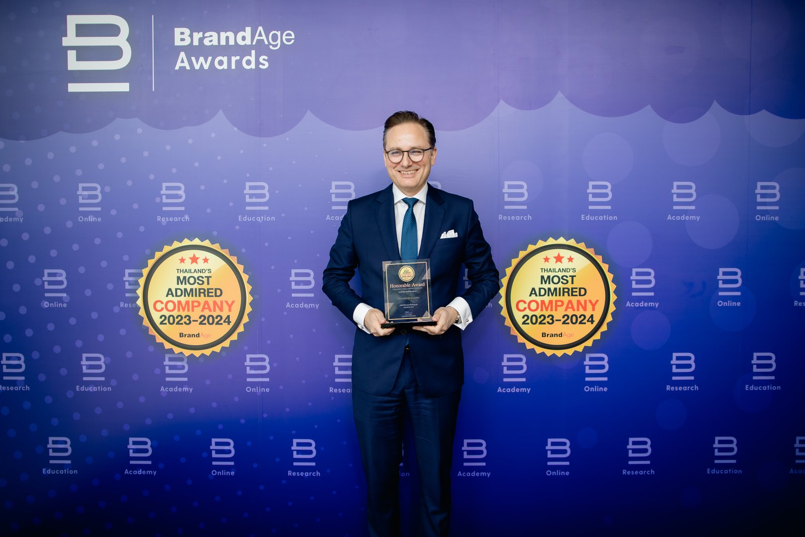 มร. อเล็กซานเดอร์ บารากา ประธานและซีอีโอ บีเอ็มดับเบิลยู กรุ๊ป ประเทศไทย ขึ้นรับรางวัลบริษัทรถยนต์ขวัญใจมหาชนอันดับหนึ่งต่อเนื่องเป็นปีที่ 6 จากการสำรวจ Thailand’s Most Admired Company 2023-2024 โดยนิตยสารแบรนด์เอจ