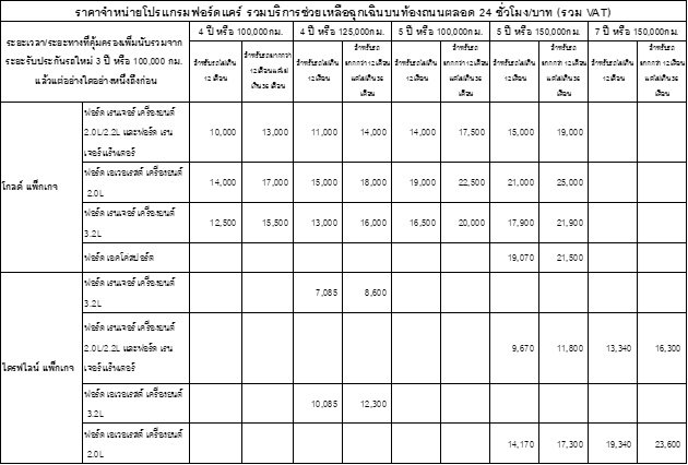 ฟอร์ด ประเทศไทย เปิดตัวโปรแกรมฟอร์ดแคร์ (FORD CARE) โปรแกรมการขยายระยะการรับประกันคุณภาพรถยนต์ใหม่ในรูปแบบสมาชิกที่มอบการดูแลและคุ้มครองรถของลูกค้าแบบครบวงจร พร้อมมอบความสบายใจในการถือครองรถยนต์ฟอร์ดในระยะยาว โดยฟอร์ดแคร์จะให้การคุ้มครองต่อเนื่องเมื่อการรับประกันรถใหม่จากโรงงานสิ้นสุดลง เพื่อให้ลูกค้าคลายความกังวลเรื่องค่าใช้จ่ายในการบำรุงรักษา ฟอร์ดแคร์ มี 2 แพ็กเกจหลักให้เลือกคือ โกลด์ แพ็กเกจ (Gold Package) และไดรฟไลน์ แพ็กเกจ (Driveline Package) ที่มาพร้อมสิทธิประโยชน์มากมายสำหรับลูกค้าสมาชิก พิเศษรับทันทีส่วนลดมูลค่า 1,500 บาทเมื่อเลือกซื้อโปรแกรมฟอร์ดแคร์ภายใน 31 ธันวาคม 2564