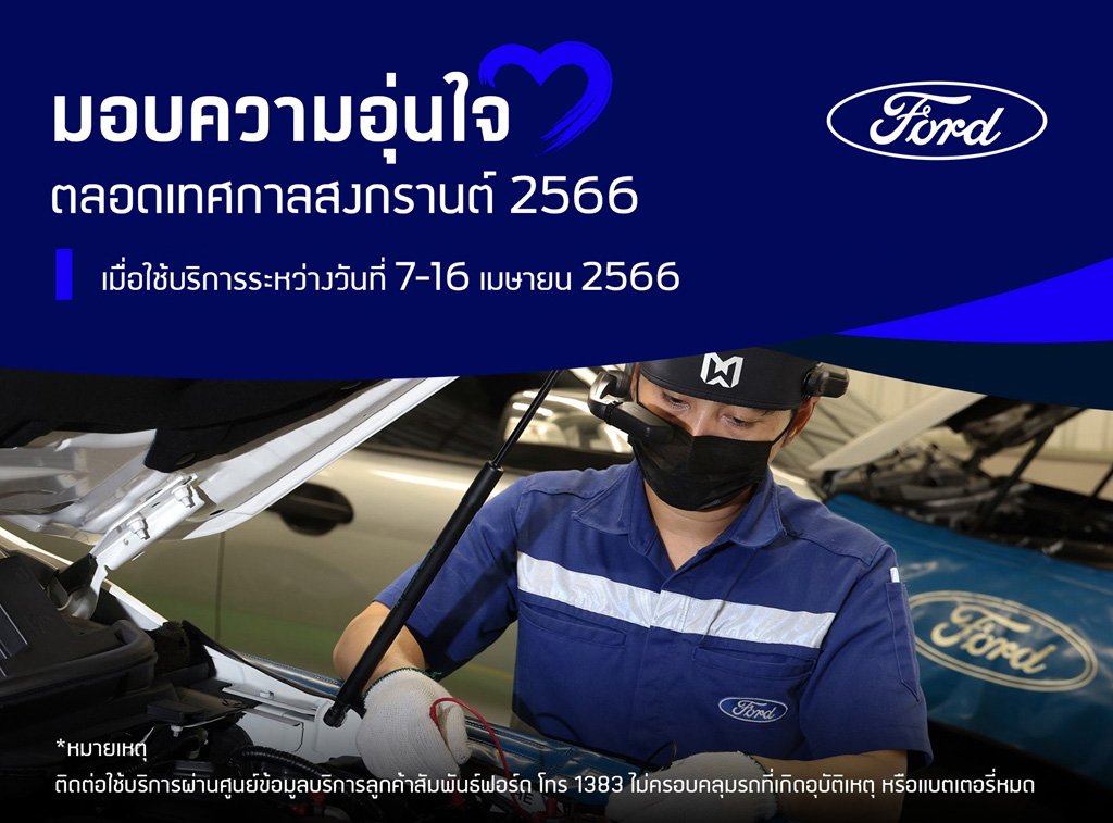 นอกเหนือไปจากเทคโนโลยีความปลอดภัยข้างต้นแล้ว ฟอร์ดยังมุ่งมั่นที่จะมอบความอุ่นใจตลอดการเดินทางในช่วงเทศกาลหยุดยาวให้ลูกค้าผู้ขับขี่รถฟอร์ดอุ่นใจยิ่งกว่าเดิมด้วยแคมเปญบริการช่วยเหลือฉุกเฉินบนท้องถนน 24 ชั่วโมง (Roadside Assistance) พร้อมบริการรถทดแทนระหว่างซ่อม และบริการส่งมอบรถให้แก่ลูกค้าถึงที่โดยไม่มีค่าใช้จ่ายสำหรับเจ้าของรถฟอร์ดที่อายุไม่เกิน 3 ปี หรือมีระยะทางการใช้งานไม่เกิน 100,000 กิโลเมตร (แล้วแต่ระยะใดถึงก่อน) และลูกค้ารถยนต์ฟอร์ด เจเนอเรชันใหม่ ที่อายุไม่เกิน 5 ปี หรือมีระยะทางการใช้งานไม่เกิน 150,000 กิโลเมตร (แล้วแต่ระยะใดถึงก่อน) ตั้งแต่วันที่ 7-16 เมษายน 2566 ตอกย้ำความมุ่งมั่นที่จะดูแลลูกค้าเหมือนคนในครอบครัว