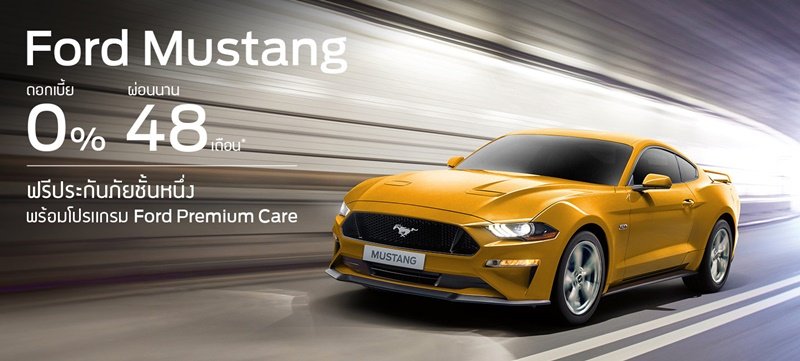 ฟอร์ด มัสแตง รถสปอร์ตระดับตำนาน มาพร้อมแคมเปญสุดเร้าใจ ดอกเบี้ยพิเศษ 0% นาน 48 เดือน ดาวน์ 25% พร้อมแพ็คเกจฟอร์ด พรีเมี่ยม แคร์ นาน 5 ปี หรือ 100,000 กิโลเมตร แล้วแต่ระยะใดถึงก่อน และฟรีประกันภัยชั้นหนึ่ง