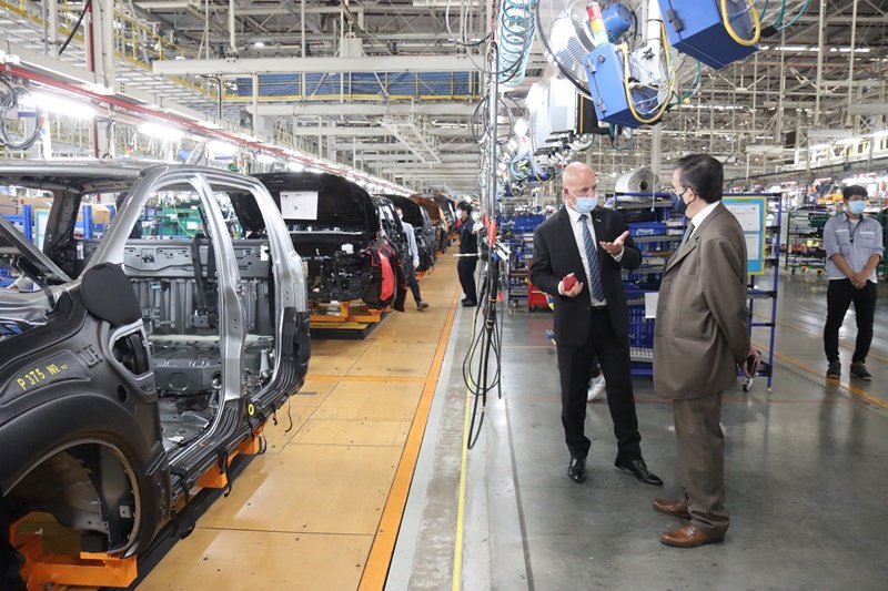 ฟอร์ด ประเทศไทย ให้การต้อนรับ ฯพณฯ ตีแยรี มาตู เอกอัครราชทูตฝรั่งเศสประจำประเทศไทย และมร. อูแบร์ โกลารีส อัครราชทูตที่ปรึกษาฝ่ายเศรษฐกิจ พร้อมด้วย มร. ฟลอเร็น เฮอสัน รองประธานฝ่ายอาเซียน จาก โฟเรอเซีย อินทีเรีย ซีสเต็มส์ (ประเทศไทย) ซึ่งเป็นบริษัทชั้นนำด้านเทคโนโลยีรถยนต์และเป็นผู้ผลิตชิ้นส่วนรถยนต์ให้กับฟอร์ด ในโอกาสเข้าเยี่ยมชมโรงงานฟอร์ด ไทยแลนด์ แมนูแฟคเจอริ่ง (เอฟทีเอ็ม) จังหวัดระยอง เพื่อชมสายการผลิตรถกระบะฟอร์ด เรนเจอร์รุ่นปัจจุบัน พร้อมชมรถ Pre-Production ของฟอร์ด เรนเจอร์ เจเนอเรชันใหม่ ซึ่งกำลังอยู่ในขั้นตอนการทดลองประกอบ และทดสอบคุณภาพ โดยมี มร. อังเดร คาวาลาโร ผู้อำนวยการฝ่ายปฏิบัติการ กลุ่มตลาดนานาชาติ และทวีปอเมริกาใต้ ฟอร์ด มอเตอร์ คัมปะนี พร้อมด้วย มร. ซิลวิโอ อิลลี ผู้อำนวยการฝ่ายผลิต ประจำภูมิภาคเอเชีย และ มร.วินโค้ ซาริค ผู้จัดการโรงงาน เอฟทีเอ็ม ให้การต้อนรับเมื่อเร็วๆ นี้