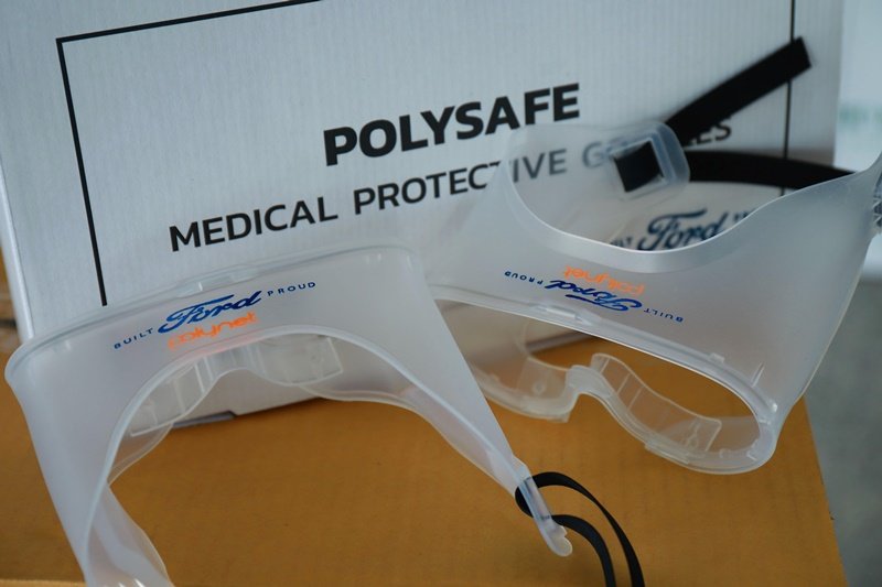 แว่นตานิรภัยทางการแพทย์ที่ฟอร์ดและโพลีเน็ตได้ร่วมกันผลิตขึ้น เป็นแว่นครอบตาที่ผลิตจากซิลิโคนเกรดทางการแพทย์ นำมาประกอบเข้ากับเลนส์กระจกโพลีคาร์บอเนตซึ่งเคลือบน้ำยาป้องกันฝ้า ทำให้มีความสามารถในการป้องกันดวงตาจากละอองน้ำ สารเคมี และของเหลวต่างๆ รวมถึงช่วยป้องกันการเกิดฝ้าขึ้นที่กระจกในกรณีที่ใช้เป็นเวลานาน ช่วยให้การมองเห็นไม่พร่ามัว