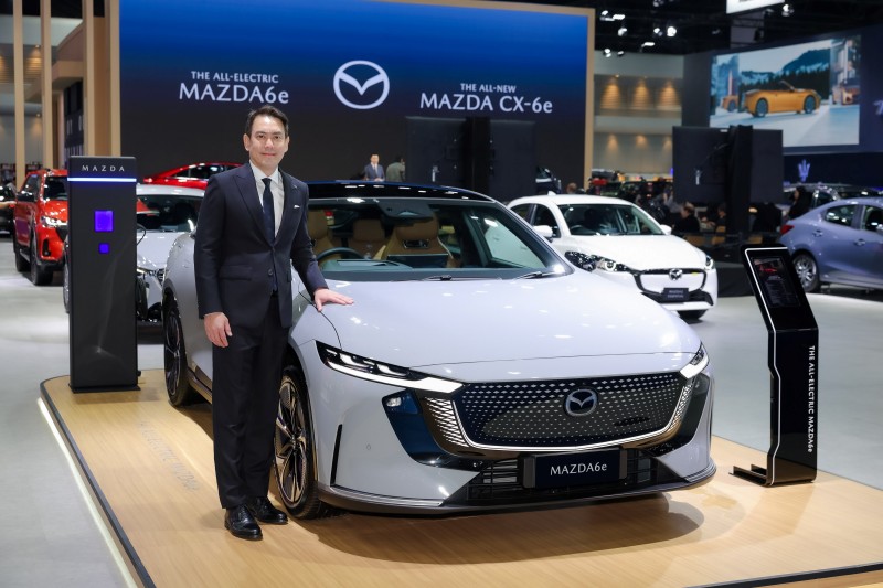 สำหรับในงาน มอเตอร์ โชว์ 2026 นอกจากมาสด้าจะได้นำยนตรกรรมเอสยูวีแห่งอนาคต The All-New Mazda CX-6e ที่พัฒนาภายใต้กลยุทธ์ Multi-solution มาให้ลูกค้าได้สัมผัสอย่างใกล้ชิดเป็นครั้งแรกในอาเซียน กับ ASEAN Premiere มาสด้ายังได้เปิดตัว The All-Electric Mazda6e ยนตรกรรมไฟฟ้ารุ่นแรกจากมาสด้าในประเทศไทย ที่มีให้เลือกทั้งหมด 2 รุ่น ได้แก่ รุ่น Premium ราคาจำหน่าย 1,169,000 ล้านบาท และรุ่น Exclusive ราคาจำหน่าย 1,199,000 ล้านบาท พร้อมมอบข้อเสนอ