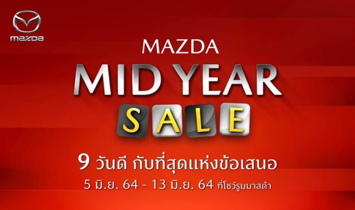 มาสด้าเดินหน้ากระตุ้นตลาดต่อเนื่องพร้อมส่งแคมเปญพิเศษ “MAZDA MID YEAR SALE” กับ 9 วันดีๆ ที่สุดแห่งข้อเสนอ ระหว่างวันที่ 5 – 13 มิถุนายน 2564 เพื่อให้ลูกค้าได้เป็นเจ้าของรถยนต์มาสด้าแบบสบายกระเป๋า ดอกเบี้ยต่ำสุด 0% และรับประกันคุณภาพสูงสุด 5 ปี พร้อมรับฟรีลำโพง JBL CLIP 4 มูลค่า 2,490 บาท เมื่อจอง 5,000 บาทขึ้นไป ณ โชว์รูมรถยนต์มาสด้า รวมถึงเปิดเผยผลงานชิ้นโบแดงจากการกระตุ้นกำลังซื้อจากแคมเปญ Mazda M Day ส่งผลให้เดือนพฤษภาคมยอดขายขยับขึ้นไปเกือบ 3,000 คัน เติบโตเพิ่มขึ้น 75% ตอกย้ำกระแสตอบรับที่ดีเยี่ยมต่อรถยนต์นั่งและครอสโอเวอร์เอสยูวีรวมทั้งปิกอัพมาสด้า บีที-50