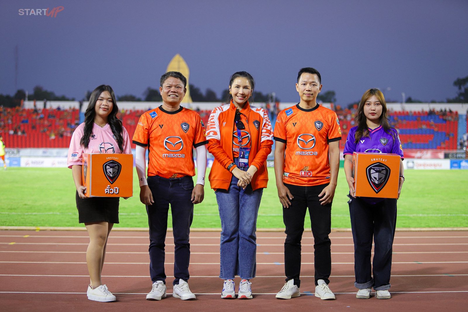 หลังจากลูกค้าและแฟนคลับร่วมกันทำโป่งดินเพื่อสัตว์ป่าเป็นที่เรียบร้อยแล้ว ได้เดินทางต่อไปยังสนามกีฬาเฉลิมพระเกียรติ 80 พรรษา เพื่อรวมตัวสร้างความฮึกเหิมและรวมพลังเป็นหนึ่งเดียว และส่งกำลังใจให้ทีมสวาทแคท ในการแข่งขันแมตต์สำคัญระหว่าง สวาทแคท กับ พัทยา ยูไนเต็ด นอกจากลูกค้าและแฟนคลับจะได้สนุกสนานกับกิจกรรมตลอดการเดินทางแล้ว ยังเป็นการกระชับความสัมพันธ์ระหว่างแฟนมาสด้า แฟนคลับสวาทแคท และนักกีฬาในการสู้ศึกการแข่งขันเพื่อทีมที่ทุกคนรักและภาคภูมิใจ สำหรับกิจกรรมในครั้งนี้ ไม่เพียงแค่ผู้ร่วมกิจกรรมจะได้สัมผัสถึงประสบการณ์ความสุขในการขับขี่ หรือ Joy of Driving จากการขับขี่รถยนต์มาสด้าแล้ว ยังได้รับความสุขจากการได้มีส่วนช่วยสร้างสรรค์ชุมชนและสิ่งแวดล้อมให้เกิดความยั่งยืน เพื่อทำให้โลกของเราน่าอยู่ยิ่งขึ้นสำหรับผู้คนในเจเนอเรชั่นถัดไป