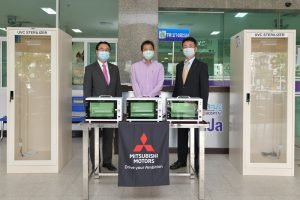 บริษัท มิตซูบิชิ มอเตอร์ส (ประเทศไทย) จำกัด ดำเนินโครงการ “มิตซูบิชิ มอเตอร์ส ช่วยหมอ ต่อชีวิต สู้ภัยโควิด-19” อย่างต่อเนื่อง เพื่อร่วมสนับสนุนการป้องกันการแพร่ระบาดของโรคโควิด-19 โดยล่าสุด มิตซูบิชิ มอเตอร์ส ประเทศไทย ได้ต่อยอดศักยภาพด้านการผลิตมาสู่การสร้างสรรค์นวัตกรรมด้านความรับผิดชอบต่อสังคม โดยได้ผลิตเครื่องอบฆ่าเชื้อ UV-C และมอบให้แก่โรงพยาบาล 4 แห่งในจังหวัดชลบุรี เพื่อใช้สนับสนุนการปฏิบัติหน้าที่ทางการแพทย์
