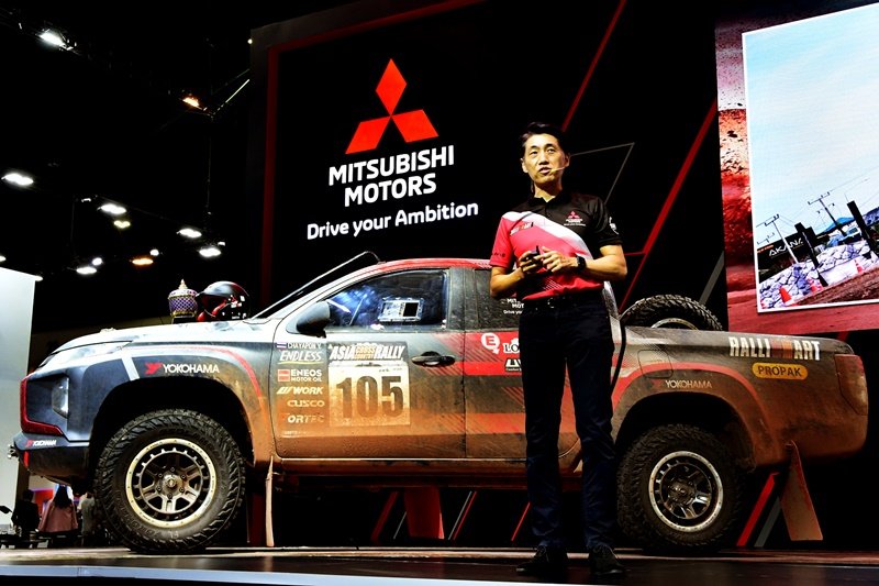 “รถไทรทัน แรลลี่คาร์ คันแชมเปี้ยนที่เพิ่งชนะการแข่งขันเอเชีย ครอสคันทรี แรลลี่ 2022 ที่จัดแสดงในงานนี้ สร้างขึ้นจากรถกระบะ มิตซูบิชิ ไทรทัน ที่ผลิตในไทย รุ่นเดียวกับที่จำหน่ายอยู่ในท้องตลาด โดยยังคงใช้เครื่องยนต์ดีเซลเทอร์โบ 2.4 ลิตร อันทรงพลัง พร้อมด้วยระบบช่วงล่างที่แข็งแกร่งของไทรทัน ที่ให้สมรรถนะการขับขี่ที่ยอดเยี่ยม มีการปรับแต่งน้อยมาก เพียงลดน้ำหนักของตัวรก และเพิ่มอุปกรณ์ด้านความปลอดภัยให้เหมาะสมกับการตะลุยสนามแข่ง จึงเรียกได้ว่า รถมิตซูบิชิ ไทรทันที่เราใช้กันอยู่ทั่วไป ก็มีสมรรถนะแข็งแกร่งทรงพลัง คล้ายคลึงกับ ไทรทัน แรลลี่คาร์ คันแชมป์เปี้ยนนี้” มร. เออิอิชิ กล่าว