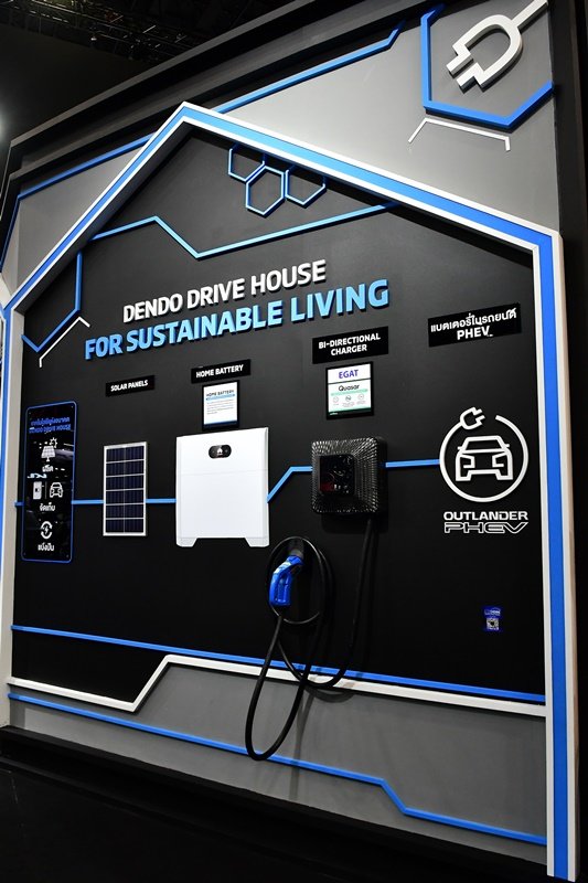 เทคโนโลยีเดนโด ไดร์ฟ เฮ้าส์ พัฒนาโดยมิตซูบิชิ มอเตอร์ส คือ นวัตกรรมบริหารจัดการระบบนิเวศของพลังงานไฟฟ้าด้วยการผลิต-จัดเก็บ-และแบ่งปันพลังงานไฟฟ้าโดยเปลี่ยนพลังงานแสงอาทิตย์มาเป็นกระแสไฟฟ้าผ่านแผงโซลาร์ ระบบนี้ประกอบด้วยรถยนต์ปลั๊กอินไฮบริด (พีเอชอีวี) เครื่องชาร์จไฟสองทิศทาง แผงโซลาร์ และแบตเตอรี่สำรองสำหรับใช้ภายในบ้าน (Energy Storage System หรือ ESS) เทคโนโลยีนี้ช่วยให้ผู้ขับขี่ มิตซูบิชิ เอาท์แลนเดอร์ พีเอชอีวี สามารถชาร์จรถยนต์ของตนเองด้วยการใช้ไฟจากระบบไฟฟ้าและจ่ายไฟฟ้าจากรถยนต์กลับสู่บ้านได้ นอกจากช่วยประหยัดค่าน้ำมันแล้ว “เดนโด ไดร์ฟ เฮ้าส์” ยังช่วยให้เจ้าของบ้านประหยัดค่าไฟฟ้าด้วยการใช้ไฟฟ้าที่เหลืออยู่ในแบตเตอรี่สำรองสำหรับใช้ภายในบ้านหรือแบตเตอรี่ของรถยนต์ อีกทั้งยังเป็นแหล่งพลังงานสำรองที่ไว้วางใจได้ในกรณีที่เกิดเหตุฉุกเฉินหรือเมื่อเกิดไฟดับ