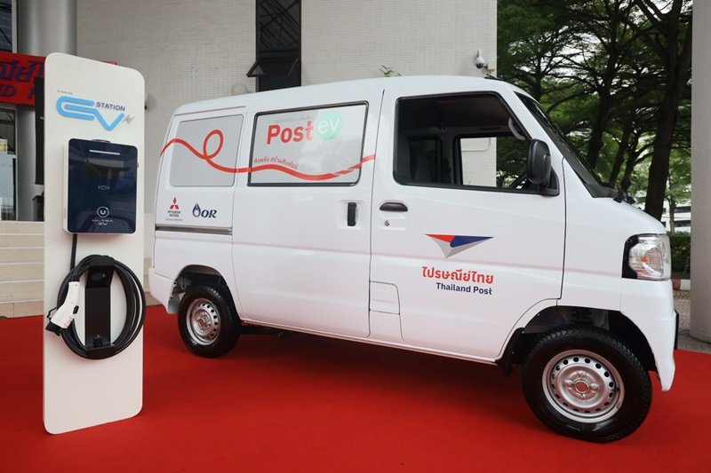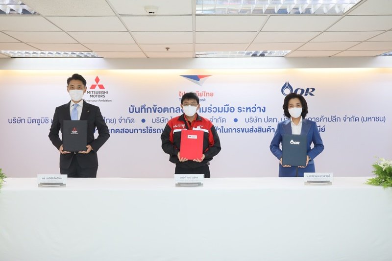 นายกำพุธ อยู่คง ประธานเจ้าหน้าที่บริหาร สายงานระบบไปรษณีย์และปฏิบัติการนครหลวง บริษัท ไปรษณีย์ไทย จำกัด (ปณท) และ นางสาวจิราพร ขาวสวัสดิ์ ประธานเจ้าหน้าที่บริหารและกรรมการผู้จัดการใหญ่ บริษัท ปตท. น้ำมัน และการค้าปลีก จำกัด (มหาชน) (โออาร์) ร่วมพิธีลงนามบันทึกความเข้าใจ เพื่อดำเนินโครงการศึกษานำร่องการใช้รถยนต์ไฟฟ้าพลังงานแบตเตอรี่ (BEV) ในการดำเนินธุรกิจการขนส่ง โดยภายใต้โครงการศึกษานำร่องระยะเวลา 1 ปีนี้ มิตซูบิชิ มอเตอร์ส ประเทศไทย จะจัดส่งรถยนต์ มิตซูบิชิ มินิแค็บ มีฟ จำนวน 2 คัน เพื่อการศึกษาและทำความเข้าใจถึงการใช้งานรถยนต์ไฟฟ้าพลังงานแบตเตอรี่เพื่อวัตถุประสงค์ด้านการพาณิชย์ รวมถึงการเก็บข้อมูลการใช้งานเครื่องชาร์จไฟฟ้า พฤติกรรมการใช้งานในกลุ่มของรถขนส่งพัสดุ และความเป็นไปได้ที่จะขยายการใช้รถยนต์ไฟฟ้าในประเทศไทย โดยใช้ข้อมูลจากการใช้งานจริง ซึ่งรวบรวมจากการดำเนินงานด้านการขนส่งของไปรษณีย์ไทย