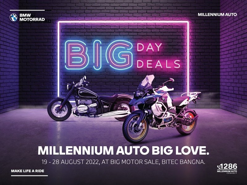 มิลเลนเนียม ออโต้ กรุ๊ป หยิบยื่นข้อเสนอสุดพิเศษ ให้กับผู้ที่กำลังสนใจยนตรกรรมในเครือ บีเอ็มดับเบิลยู ยกทัพรถยนต์ บีเอ็มดับเบิลยู, มินิ และมอเตอร์ไซค์ บีเอ็มดับเบิลยู มอเตอร์ราด หลากรุ่น มาจัดแสดงพร้อมจำหน่ายภายในงาน Big Motor Sale 2022