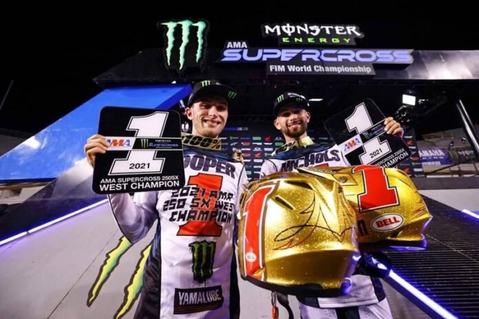 โคลท์ นิโคลส์ #64 ดาวบิดสังกัดมอนสเตอร์ เอเนอร์จี้ สตาร์ เรซซิ่ง ยามาฮ่า ขึ้นครองบัลลังก์แชมป์รุ่น 250SX ฝั่งตะวันออก ด้าน จัสติน คูเปอร์ #32 เพื่อนร่วมสังกัด ผงาดคว้าแชมป์ประจำปีฝั่งตะวันตก เกม 2 ล้อทางฝุ่นอเมริกัน