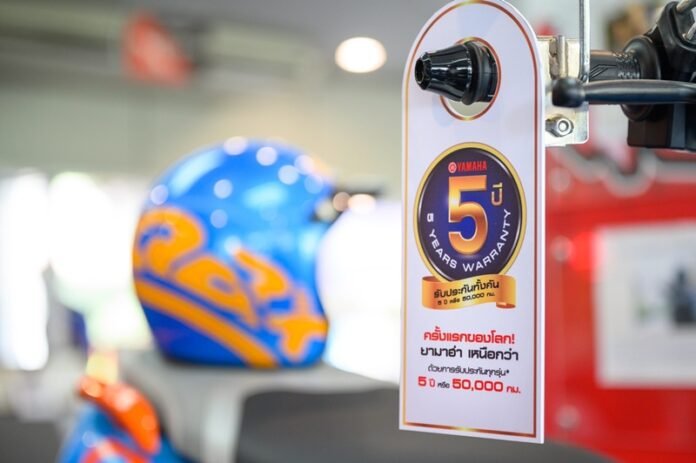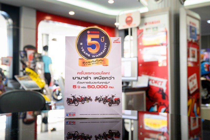 บริษัท ไทยยามาฮ่ามอเตอร์ จำกัด ผู้ผลิตและจำหน่ายรถจักรยานยนต์ชั้นนำของประเทศไทย ตอกย้ำความเป็นผู้นำในแบรนด์รถจักรยานยนต์ของประเทศไทยที่กล้ารับประกันคุณภาพสินค้าทั้งคันตลอดระยะเวลา 5 ปี หรือ 5 หมื่นกิโลเมตร สำหรับลูกค้ารถจักรยานยนต์ยามาฮ่าทุกรุ่นขนาดเครื่องยนต์ไม่เกิน 500 ซีซี ที่ได้ลงทะเบียนรับประกันคุณภาพสินค้าหลังจากวันที่ซื้อสินค้า จะได้สิทธิ์รับประกันคุณภาพทุกชิ้นส่วนเป็นเวลา 5 ปี หรือ 50,000 กม. แล้วแต่ระยะใดถึงก่อน ไม่รวมอะไหล่สึกหรอตามอายุการใช้งาน ทั้งนี้ต้องนำรถเข้าตรวจเช็กตามระยะที่บริษัทฯกำหนด โดยสามารถรับสิทธิ์ได้ตั้งแต่วันนี้ไปจนถึง 31 ธันวาคม 2564