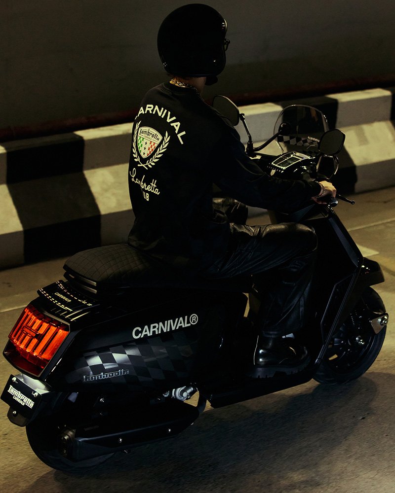การผสานระหว่าง DNA อิตาเลียนสไตล์ของรถสกู๊ตเตอร์ LAMBRETTA เข้ากับแฟชั่นสตรีทสุดเท่จาก CARNIVAL ออกมาเป็นความพิเศษสุดเอ็กซ์คลูซีฟ ในรุ่นลิมิเต็ด X300 CANIVAL ด้วยคอนเซปต์ดีไซน์ “Midnight Checker” แรงบันดาลใจจากธงลายตารางหมากรุกที่เป็นสัญลักษณ์แห่งชัยชนะ การใช้ลายตารางหมากรุกแบบ Black on Black ด้วยความพิเศษของสีดำ แบบ สี Glossy & Matte Black เพิ่มความลึกลับและลุ่มลึก พร้อมดีไซน์ Custom ของชุดแต่ง ตะแกรงท้าย CARNIVAL เบาะนั่ง และ Shield ด้านหน้าลาย Checkerboard สะท้อนความเป็นสตรีทแฟชั่นอย่างแท้จริงในแบบฉบับของ CARNIVAL สีดำสุดเข้มที่ใช้ ทำให้รถรุ่นนี้โดดเด่นไม่เหมือนใคร ทั้งยังคงเอกลักษณ์ของ LAMBRETTA ไว้อย่างลงตัว