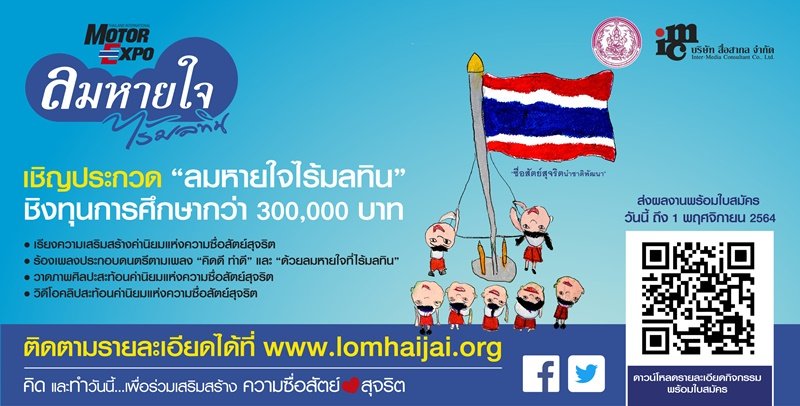 มูลนิธิ “ลมหายใจไร้มลทิน” รณรงค์สร้างค่านิยมซื่อสัตย์สุจริตต่อเนื่อง เชิญเด็ก และเยาวชน ส่งผลงานประกวด 4 ประเภท เรียงความ ร้องเพลง วาดภาพ และ VDO Clip ตั้งแต่วันนี้-1 พฤศจิกายน 2564