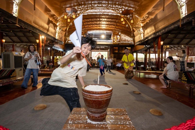 เริ่มต้นกิจกรรมสุดม่วนที่ Thaithani Cultural Village & Elephant Pattaya ทุกครอบครัวได้ร่วมพิชิตภารกิจย้อนวันวานสุดม่วนจอยถึง 4 ฐาน ได้แก่ ม่วนดนตรีเพลง, ม่วนสเต็ป, ม่วนวิ่ง ม่วนเดิน, ม่วนต่อยม่วนตี โดยเล่นเป็นทีม ให้ทุกคนทั้งเด็กและผู้ใหญ่ ได้ร่วมม่วนไปด้วยกันอย่างสนุกสนาน แต่ละฐานเรียกทั้งเสียงหัวเราะและรอยยิ้ม ทำให้บรรยากาศอบอวลไปด้วยความอบอุ่นสนุกสนานตลอดทั้งบ่าย