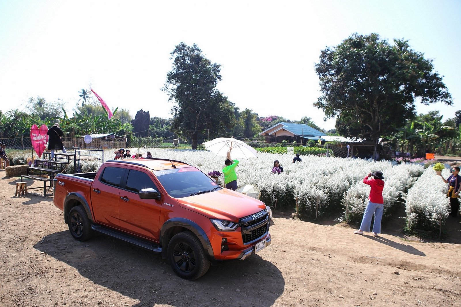 พวกเราอำลาที่พักกันหลังอาหารมื้อเช้าที่มีให้เลือกแบบ a la carte ทั้งเมนูไข่ต่าง ๆ และข้าวต้ม ผสมผสานกับผักสลัดออแกนิค น้ำสลัด และแยมแบบโฮมเมด ระหว่างเดินทางกลับสู่ตัวเมืองเชียงใหม่ ยังได้แวะเที่ยวสวนดอกไม้ละแวกแม่ริมที่กำลังเป็นกระแสดังอยู่ในโซเชียล ที่นี่เดิมเป็นชุมชนที่ปลูกดอกมากาเร็ต รวมถึงดอกคัตเตอร์ขายอยู่แล้ว และเพิ่งเปิดเป็นธุรกิจใหม่ให้นักท่องเที่ยวได้เข้าชมตั้งแต่ปลายปีที่ผ่านมา โดยเก็บค่าเข้าคนละ 50 บาท พวกเราเข้าชมความงามของทุ่งดอกคัตเตอร์สีขาวที่ “We Flower Village สวนดอกไม้อุ๊ยเป็ง” และทุ่งดอกมากาเร็ต 3 สีม่วง สีชมพู และสีขาวที่กำลังบานสะพรั่งของ “สวนสมคิด” ซึ่งอยู่ติดกัน ถ่ายรูปสวย ๆ ปัง ๆ ไว้เป็นความทรงจำอัพลงโซเชียลกันได้ถึงปีหน้ากันเลยทีเดียว จากนั้นจึงโบกมือลาความสวยละมุนของเหล่าดอกไม้ไปยังร้านอาหารพื้นเมืองชื่อดัง “ลำดีตี้ขัวแดง” เป็นมื้อส่งท้ายของทริป พร้อมกับส่งต่อรถ “ออลนิว อีซูซุดีแมคซ์ พลานุภาพ…พลิกโลก!” ที่โดดเด่นทั้งรูปลักษณ์ สมรรถนะ ประโยชน์ใช้สอย และความประหยัดน้ำมัน ตอกย้ำความเป็นยนตรกรรมที่เหนือกว่าคำว่าปิกอัพให้สื่อมวลชนอีกกลุ่มได้มาเก็บความประทับใจ ความสุข และความสนุกของการขับรถเที่ยวในเส้นทางเชียงใหม่-เชียงดาวที่ยังมีสถานที่ท่องเที่ยวอีกหลายแห่งที่รอการค้นพบ