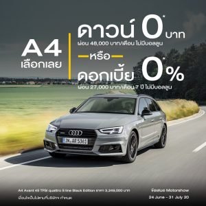 อยากขับ Audi ต้องได้ขับ อาวดี้ ประเทศไทย ประกาศแคมเปญมอเตอร์โชว์แรงสะท้านใจเอาใจคนรักอาวดี้ จัดโปรฯ ออกรถทำไมต้องดาวน์ ลูกค้าสามารถเลือก ดาวน์ 0 บาท หรือเลือกผ่อนสบายๆ 0% สูงสุดนาน 7 ปี ไม่มีบอลลูน เริ่มแล้ววันนี้ที่โชว์รูมอาวดี้ทั่วประเทศ และภายในงาน บางกอก อินเตอร์เนชั่นแนล มอเตอร์โชว์ 2020