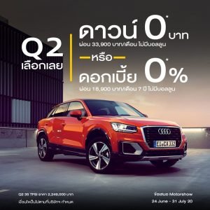 1. เลือกระหว่าง ดาวน์ 0 บาท หรือ โปรแกรมผ่อนสบายๆ ดอกเบี้ย 0% นาน 7 ปี ***ไม่มีบอลลูน อาทิเช่น A1, A4 Avant, A8L, Q2, Q5, Q8, TT Coupé, TT Roadster และ TTS