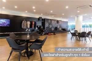 ในส่วนของความปลอดภัยโดยรอบทั้งภายในและภายนอกอาคาร มีการพ่นน้ำยาฆ่าเชื้อ เช็ดทำความสะอาดพื้น ผนัง อุปกรณ์ เครื่องใช้สำนักงาน เครื่องมือ ลิฟท์ ราวบันได ราวจับประตู และห้องรับรองลูกค้า โซฟา ทุกๆ ชั่วโมง ทั้งนี้เรามีการอบโอโซนทำความสะอาดทั้งอาคารเพื่อให้ลูกค้ามั่นใจว่าเราตระหนักถึงความปลอดภัยของลูกค้าที่เข้ามาใช้ศูนย์บริการเป็นอย่างมาก โดยติดตั้งจุดบริการเจลล้างมือทั่วอาคาร และเตรียมหน้ากากอนามัยให้ลูกค้าด้วย