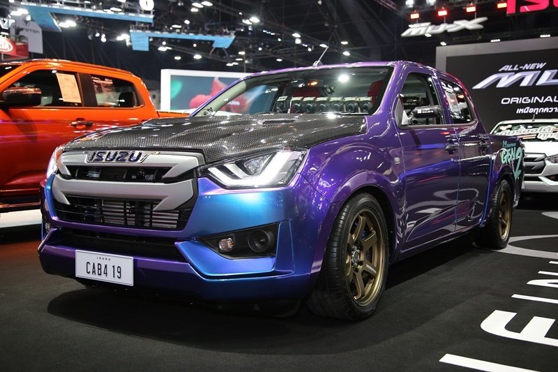 - “อีซูซุดีแมคซ์ แค็บโฟร์ เอส” ปิกอัพแต่งซิ่งพิเศษสะกดทุกสายตาด้วยสติกเกอร์แร๊พพิเศษสีม่วงสะดุดตา จัดทรงด้วยชุดแต่งรอบคันสะท้อนบุคลิกที่โฉบเฉี่ยว เต็มอารมณ์สปอร์ตกับฝากระโปรงหน้า ฝาปิดกระบะท้ายและสปอยเลอร์ท้ายสีเทาดำสุดเข้มแบบ Carbon Composite จาก Monza น้ำหนักเบา ชุดไฟหน้าแบบ ISUZU Bi-LED พร้อม Daytime Running Light ชุดโหลดช่วงล่างปรับระดับได้ Aztex Force ล้ออัลลอย Rays Volk Racing TE37SB ขนาด 18 นิ้ว พร้อมยาง Toyo Tires Proxes T1-S Sport ขนาด 245/45 R18 เบรกได้มั่นใจสุดด้วยชุดดิสก์เบรกหน้าแบบ 6 Pot และหลังแบบ 4 Pot จาก Endless ปรับจูนความแรงเครื่องยนต์ด้วยกล่องพ่วง Alpha Tech รุ่น Super Storm ให้กำลังสูงสุด 350 แรงม้า แรงบิดสูงสุด 600 นิวตัน-เมตร คลัทช์ BRC Full Plate ชุดอินเตอร์คูลเลอร์และท่อไอเสียพร้อมตกแต่งห้องเครื่องยนต์สไตล์สปอร์ตโดย BRD Racing Shop เบาะคู่หน้าแบบบัคเก็ตซีท H-Drive เข้ากับชุดเข็มขัดนิรภัยแบบ 6 จุด Simpson พวงมาลัย Nardi พร้อมคอแบบพับได้ ผสานชุดแต่งตามแบบฉบับวัยรุ่นนิยมด้วย Iron Bar ทั้งภายนอกและภายในรวมมูลค่าชุดแต่งกว่า 800,000 บาท