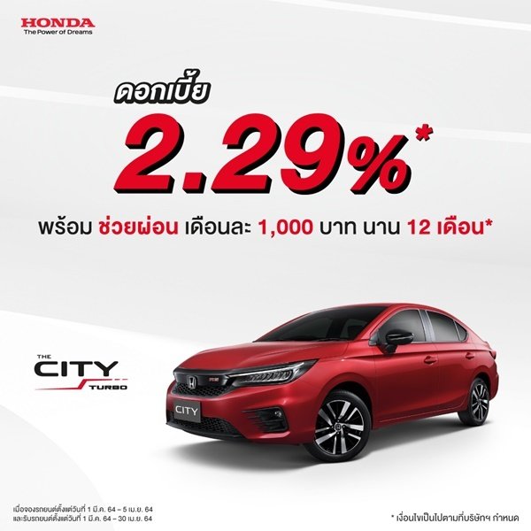 - ฮอนด้า ซิตี้ เทอร์โบ ยนตรกรรมซิตี้คาร์ที่ครองใจลูกค้าชาวไทยมาอย่างยาวนาน ที่สร้างมาตรฐานใหม่ให้ซิตี้คาร์ในประเทศไทย ด้วยยอดขายอันดับ 1 ในกลุ่มซับคอมแพคท์และอีโค ซับคอมแพคท์ และครองรางวัล Car of the Year สองปีซ้อน (2020 และ 2021) ด้วยจุดเด่นที่สามารถตอบโจทย์ทั้งด้านสมรรถนะอันทรงพลังและฟังก์ชันการใช้งานที่หลากหลาย ด้วยขุมพลังเทอร์โบ เครื่องยนต์ 1.0 ลิตร DOHC VTEC TURBO ที่ให้กำลังสูงสุด 122 แรงม้า และอัตราการประหยัดน้ำมันที่ดีเยี่ยมสูงถึง 23.8 กิโลเมตร/ลิตร อีกทั้งเป็นมิตรต่อสิ่งแวดล้อม มีอัตราการปล่อยก๊าซคาร์บอนไดออกไซด์เพียง 99 กรัม/กิโลเมตร เพิ่มความมั่นใจในทุกการขับขี่ด้วยเทคโนโลยีความปลอดภัยล้ำสมัย และฮอนด้า คอนเนค (Honda CONNECT) มาพร้อมข้อเสนอ “Honda Big Smile ยิ้มใหญ่โดนใจทุกโปร” ดอกเบี้ยพิเศษ 2.29% พร้อมฮอนด้าช่วยผ่อนเดือนละ 1,000 บาท นาน 12 เดือน หรือเลือกรับข้อเสนอ “Double Smile” ดาวน์เริ่มต้น 0 บาท หรือผ่อนเริ่มต้นเดือนละ 5,500 บาท
