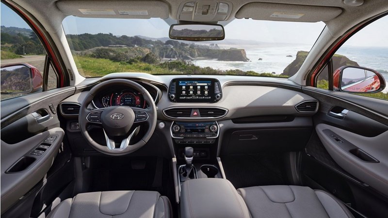 การออกแบบภายในของซานตาเฟ่ใหม่ ได้เพิ่มพื้นที่และความสะดวกสบายมากขึ้นกว่าเดิมเมื่อเทียบกับรุ่นก่อนหน้านี้ รวมทั้งได้เพิ่มความหรูหราโดยส่วนประกอบทุกชิ้นทำจากวัสดุสัมผัสนุ่มระดับพรีเมี่ยม ติดตั้งคอนโซลกลางอยู่ในระดับสูงทำให้ผู้ขับขี่และผู้โดยสารด้านหน้ารู้สึกเหมือนนั่งอยู่บนเก้าอี้นวม