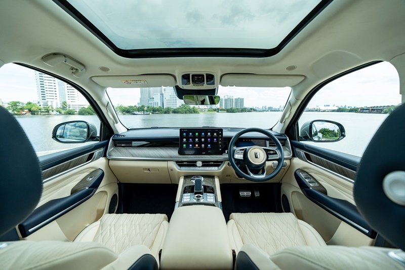 - หลังคาซันรูฟระบบไฟฟ้าแบบพาโนรามิคขนาดใหญ่พร้อมราวหลังคา เพื่อเพิ่มการใช้งานเสาอากาศแบบ Shark Fin