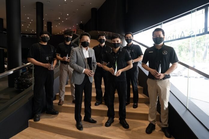 เมื่อเร็วๆ นี้ นายจิระพล รุจิวิพัฒน์ (ที่ 4 จากขวา) กรรมการผู้จัดการ บริษัท ไพรม์มัส ออโต้เฮาส์ จำกัด รับโล่รางวัลรองชนะเลิศอันดับ 1 ประเภททีม-บุคคล และเงินรางวัล มูลค่า 60,000 บาท ในการแข่งขัน Global Customer Experience Challenge (GCEC) โดยมี นายโรลันด์ โฟลเกอร์ (ที่ 5 จากขวา) ประธานบริหาร บริษัท เมอร์เซเดส-เบนซ์ (ประเทศไทย) จำกัด พร้อมนายบีเยิร์น กุซเทรา (ที่ 5 จากซ้าย) รองประธานบริหาร ฝ่ายขายและการตลาด และ นายพุทธิ ตุลยธัญ (ที่ 4 จากซ้าย) รองประธานบริหาร ฝ่ายบริการหลังการขาย บริษัท เมอร์เซเดส-เบนซ์ (ประเทศไทย) จำกัด ให้เกียรติเป็นผู้มอบ และถ่ายภาพร่วมกับบริหารระดับสูง และทีมแข่งขัน “เบนซ์ไพรม์มัส” ณ ศูนย์ฝึกอบรม เมอร์เซเดส-เบนซ์ (ประเทศไทย) บางนา-ตราด กม.19