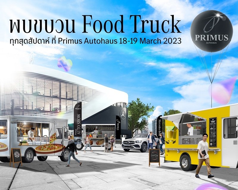 พิเศษ! ทุกวันเสาร์-วันอาทิตย์ ทุกท่านจะได้เพลิดเพลินกับรสชาติความอร่อยอย่างเต็มพิกัดของอาหารและเครื่องดื่มจากคาราวาน Food Truck อย่าพลาด! งาน “Primus Auto Show” เริ่มวันนี้ ถึง 9 เม.ย.66 เฉพาะที่ “เบนซ์ ไพรม์มัส” ย่านเลียบด่วนเอกมัย-รามอินทรา (ถนนประดิษฐ์มนูธรรม) สนใจสอบถามเพิ่มเติมได้ที่ 02 095 5555 หรือคลิกที่ www.benzprimus.com