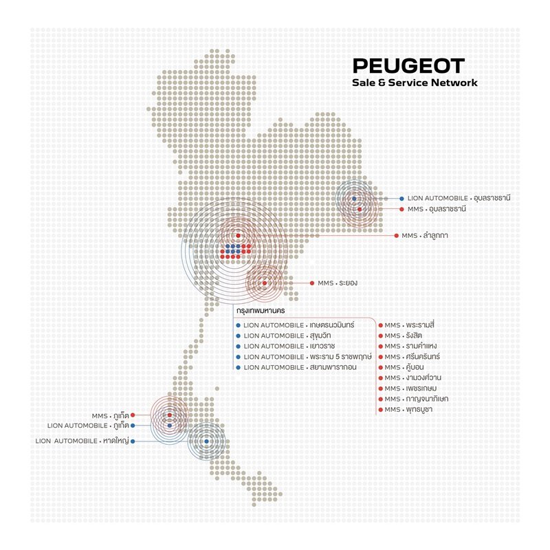 วิรัตน์ จกะวัฒนากุล, ผู้จัดการทั่วไป ฝ่ายบริการหลังการขาย บริษัท เปอโยต์ ไลอ้อน ออโตโมบิล จำกัด เผยว่า “หลังจากแบรนด์รถยนต์ เปอโยต์ กลับมาในประเทศไทยตั้งแต่ปลายปี พ.ศ. 2562 ก็นับว่ารถยนต์หรูจากฝรั่งเศส ได้เข้าไปอยู่ในใจของผู้บริโภค ด้วยความโดดเด่นด้านดีไซน์ ฟังก์ชั่นการใช้งาน รวมถึงราคาที่จับต้องได้ เมื่อเทียบกับรถยนต์ยุโรปอื่นๆ ในตลาด วันนี้ เปอโยต์ ไลอ้อน ออโตโมบิล มีการเติบโตทั้งในด้านการขาย พร้อมขยายศูนย์บริการอย่างต่อเนื่อง เพื่อเพิ่มความสะดวกสบายให้แก่ลูกค้า ทั้งในกรุงเทพฯ และต่างจังหวัด ปัจจุบันรวมเครือข่ายทั้งหมด 8 สาขา ได้แก่ เกษตร-นวมินทร์, เยาวราช, สุขุมวิท, วงเวียนพระราม 5-ราชพฤกษ์, อุบลราชธานี, หาดใหญ่, ภูเก็ต