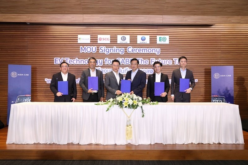 ลงนามบันทึกข้อตกลงโครงการ “เทคโนโลยีรถยนต์ขับเคลื่อนด้วยพลังงานไฟฟ้าสำหรับ CABB แท็กซี่เพื่ออนาคต (CABB EV)” พร้อมกันนี้ เอเชีย แค็บ ยังได้ลงนามความร่วมมือ 2 ฝ่ายกับ “ไมโครซอฟท์ (ประเทศไทย)” เพื่อสนับสนุนด้านไอทีและเทคโนโลยีที่เพิ่มประสิทธิภาพการใช้งานของรถ