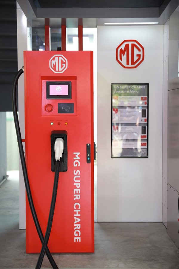 การร่วมมือระหว่าง เอ็มจี กับ บริษัท บางจาก คอร์ปอเรชั่น จำกัด (มหาชน) ซึ่งเป็นบริษัทพลังงานชั้นนำของประเทศในครั้งนี้ เป็นการร่วมมือกันติดตั้งสถานีชาร์จรถยนต์พลังงานไฟฟ้า เพื่อรองรับการเติบโตของตลาดรถยนต์พลังงานไฟฟ้าภายในประเทศ โดยติดตั้งสถานีชาร์จรถยนต์ไฟฟ้า “MG Super Charge” ในสถานีบริการน้ำมันบางจาก ครอบคลุมทั้งในเขตกรุงเทพฯ นนทบุรีและสมุทรปราการ ซึ่งในระยะเริ่มต้น มีเป้าหมายที่จะติดตั้งทั้งสิ้น 50 แห่ง ภายในปีนี้ และคาดการณ์ว่าจะเริ่มเปิดให้บริการได้ประมาณเดือนตุลาคมเป็นต้นไป