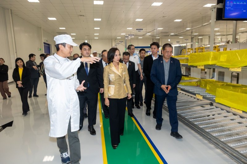 นับเป็นโอกาสครั้งสำคัญของ เอ็มจี ในการต้อนรับ นางสาวพิมพ์ภัทรา วิชัยกุล รักษาการรัฐมนตรีว่าการกระทรวงอุตสาหกรรม นายณัฐกร อุเทนสุต ที่ปรึกษาด้านพัฒนาระบบควบคุมทางสรรพสามิต และ นายนฤตม์ เทอดสถีรศักดิ์ เลขาธิการคณะกรรมการส่งเสริมการลงทุน (บีโอไอ) พร้อมคณะผู้บริหาร และหน่วยงานภาครัฐที่เกี่ยวข้องได้ให้เกียรติร่วมเปิดไลน์การผลิตรถยนต์ไฮบริดรุ่นล่าสุด ALL NEW MG3 HYBRID+ ก่อนเปิดตัว อย่างเป็นทางการในไทย วันที่ 20 สิงหาคม นี้ พร้อมเยี่ยมชมโรงงานผลิตรถยนต์แบบครบวงจรของ เอ็มจี ซึ่งตั้งอยู่ที่นิคมอุตสาหกรรมดับบลิวเอชเออีสเทิร์นซีบอร์ด 2 (WHA ESIE 2) จังหวัดชลบุรี บนพื้นที่ทั้งหมด 437.5 ไร่ ที่พัฒนาขึ้นภายใต้งบการลงทุนที่สูงถึงกว่า 30,000 ล้านบาท โดย เอ็มจี ถือเป็นแบรนด์รถยนต์จีนที่มีการลงทุนตั้งฐานการผลิตในไทยสูงเป็นอันดับต้นๆ กับจุดเด่นของโรงงานที่สามารถผลิตและประกอบรถยนต์ครอบคลุมทุกรูปแบบการขับเคลื่อนด้วยกำลังการผลิตสูงสุด 100,000 คันต่อปี โดยมีพื้นที่ของโรงประกอบตัวถัง (Body Shop) โรงพ่นสีรถยนต์ (Paint Shop) โรงประกอบรถ (General Assembly Shop) ครอบคลุม ไปถึงส่วนของคลังจัดเก็บอะไหล่เพื่อรองรับรถยนต์ของเอ็มจีทุกรุ่น รวมถึงพื้นที่ NEW ENERGY INDUSTRIAL PARK ซึ่งประกอบด้วย โรงประกอบแบตเตอรี่YBRIDPLUS ละคณะหน่วยงานภาครัรถยนต์ไฟฟ้าแห่งแรกในภูมิภาคอาเซียน ภายในโรงงานมีการจัดสรรพื้นที่เป็น 2 ส่วนใหญ่ๆ ได้แก่ ส่วนการประกอบแบตเตอรี่ ประกอบด้วยสายการผลิตอัตโนมัติที่ทันสมัยอย่างการนำหุ่นยนต์ (Robotic) เข้ามาช่วยในการผลิตเพื่อให้ได้มาตรฐานที่แม่นยำสามารถประกอบแบตเตอรี่ Cell-To Pack ได้สูงสุดมากกว่า 50,000 แพ็คต่อปี