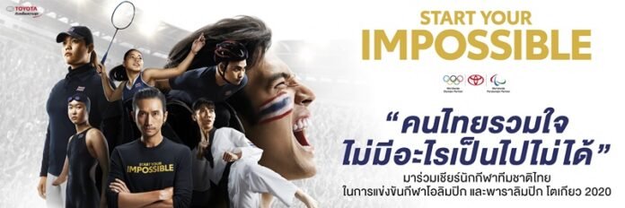 บริษัท โตโยต้า มอเตอร์ ประเทศไทย จำกัด หนึ่งในผู้สนับสนุนหลักของทีมชาติไทย และแกนนำ กลุ่มพันธมิตรภาคเอกชน” ที่จัดตั้งขึ้นเพื่อสนับสนุน ผลักดัน และเป็นศูนย์กลางของการส่งกำลังใจให้ทัพนักกีฬาทีมไทยในทุกประเภทการแข่งขัน พร้อมดึง “ตูน บอดี้สแลม” อาทิวราห์ คงมาลัย นักร้องขวัญใจชาวไทย ร่วมเป็นอีกหนึ่งพลังสำคัญ ชวนคนไทยร่วมใจเชียร์ทัพนักกีฬาไทยในการแข่งขันกีฬาโอลิมปิก และพาราลิมปิกเกมส์ โตเกียว 2020  พร้อมมุ่งมั่นสู่การเป็นองค์กรแห่งการขับเคลื่อน ที่สร้างสรรค์อิสรภาพในการเดินทางสำหรับทุกคน (Mobility for all) ภายใต้แนวคิดขององค์กรโตโยต้าทั่วโลก “START YOUR IMPOSSIBLEเพราะเราเชื่อว่าเมื่อมีอิสระในการเคลื่อนไหว…ไม่มีอะไรที่เป็นไปไม่ได้