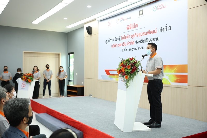 นายภาสกร บุญญลักษม์ ผู้ว่าราชการจังหวัดเชียงราย พร้อมด้วยนายสุรภูมิ อุดมวงศ์ รองกรรมการผู้จัดการใหญ่ บริษัท โตโยต้า มอเตอร์ ประเทศไทย จำกัด นางสาวอังคณา จิตรสกุล กรรมการ บริษัท โตโยต้าเชียงราย จำกัด ผู้แทนชมรมผู้แทนจำหน่ายโตโยต้า หน่วยงานราชการในจังหวัดเชียงราย และนายตะวัน ตันวัชรพันธ์ กรรมการผู้จัดการ บริษัท รตาวัน จำกัด ร่วมเปิด “ศูนย์การเรียนรู้โตโยต้า ธุรกิจชุมชนพัฒน์ แห่งที่ 3” ณ บริษัท รตาวัน จำกัด จังหวัดเชียงราย