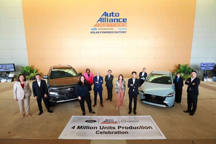โรงงานออโต้อัลลายแอนซ์ผู้ผลิตรถยนต์มาสด้าและรถปิกอัพฟอร์ด ร่วมฉลองการผลิตครบ 4 ล้านคัน หลังจากที่ลงทุนอย่างต่อเนื่องมาตลอด 29 ปี ปัจจุบันรวมมูลค่าเงินลงทุนกว่า 80,000 ล้านบาท มีกำลังการผลิตสูงถึง 270,000 คันต่อปี โดยเฉพาะการผลิตรถปิกอัพขนาด 1 ตัน ซึ่งเป็นโปรดักส์แชมเปี้ยน ส่งผลทำให้ประเทศไทยกลายเป็นศูนย์กลางการผลิตรถยนต์และส่งออกแหล่งสำคัญของโลก สะท้อนถึงความเชื่อมั่นต่อระบบเศรษฐกิจของประเทศไทย ขณะเดียวกันก็สร้างรายได้และเงินลงทุนมหาศาลเข้าสู่ระบบเศรษฐกิจของประเทศ