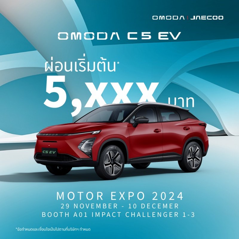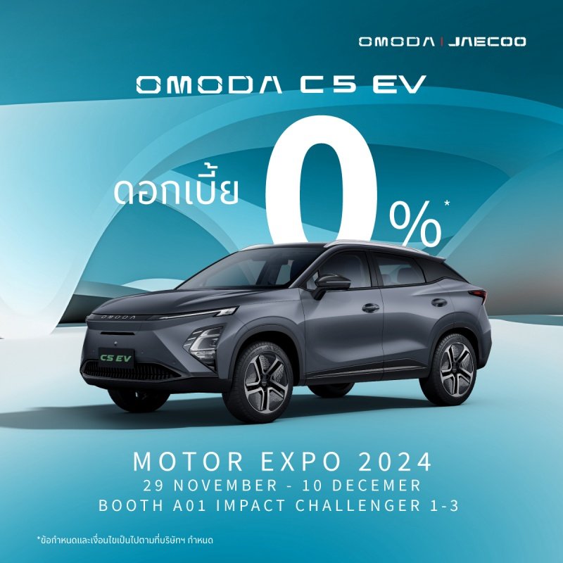สำหรับลูกค้าที่สนใจสามารถเข้ามาชมและสัมผัสรถคันจริงได้ที่งานมอเตอร์เอ็กซ์โป บูธโอโมดา แอนด์ เจคู (A01) ตั้งแต่วันที่ 29 พฤศจิกายน – 10 ธันวาคม 2567 นี้ ณ อาคารชาเลนเจอร์ฮอลล์ 1-3 เมืองทองธานี หรือทดลองขับขี่และจองรถ OMODA C5 EV และ JAECOO 6 EV ที่ผู้จำหน่ายทั่วประเทศของ OMODA & JAECOO ทั้ง 22 แห่ง ครอบคลุมทุกภูมิภาค ทั่วประเทศไทย