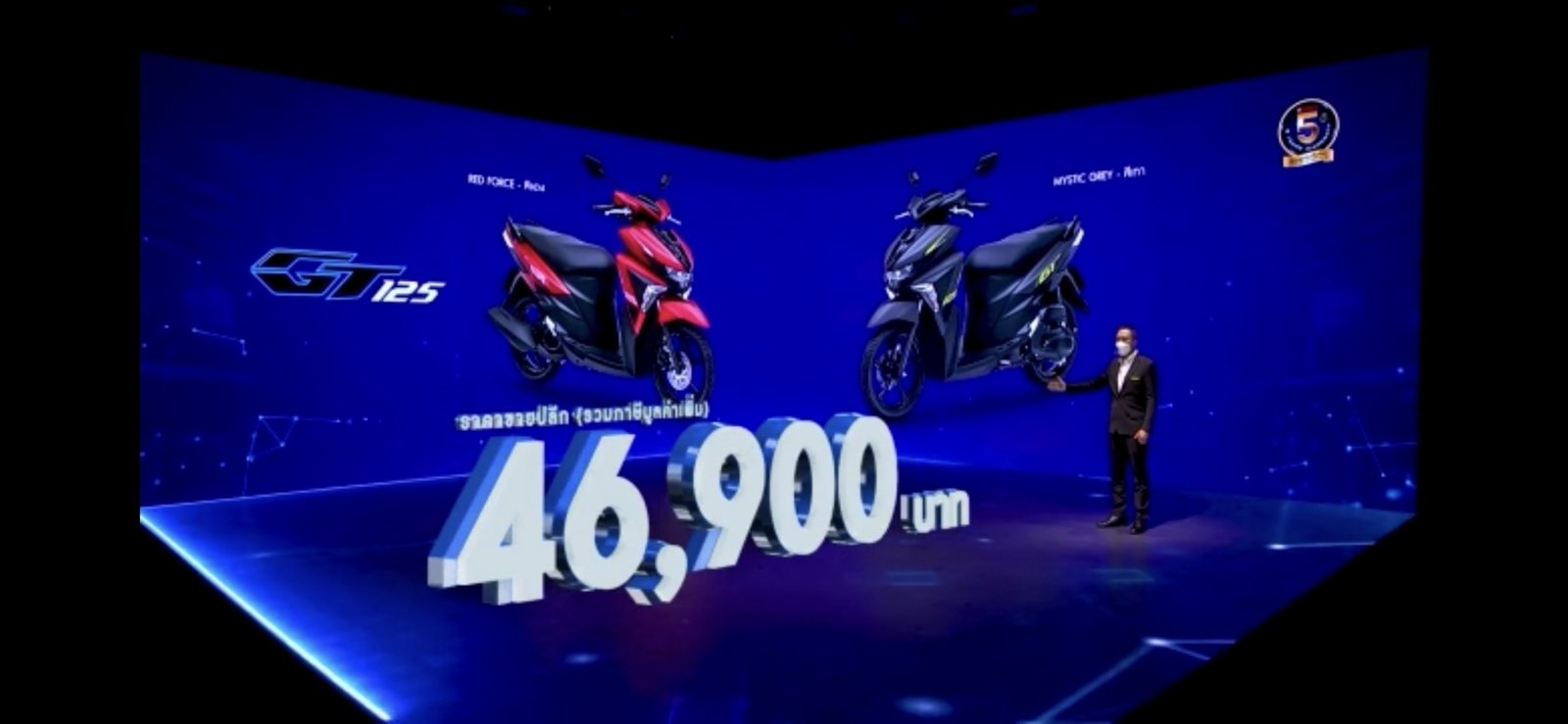 สำหรับรุ่นสุดท้ายในวันนี้ยามาฮ่าพร้อมเปิดตัวรถออโตเมติกสไตล์สปอร์ตที่ได้รับความนิยมด้วยยอดขายกว่า 1 แสนคัน จากกลุ่มวัยรุ่น และวัยทำงาน ตอบสนองไลฟ์สไตล์ สปอร์ต และโฉบเฉี่ยว สีจัดจ้าน ด้วยรุ่น GT125 2 สีใหม่ ที่ยังคงความสปอร์ตจัดจ้านอย่างชัดเจน อีกทั้งยังตอบสนองอัตราเร่ง และประหยัดน้ำมันอย่างดีเยี่ยม นำโดยสีแดง Red Force แดงสดใสพร้อมกราฟิกใหม่ เน้นย้ำความเป็น Sport Automatic อย่างชัดเจน และ สีเทา Mystic Gray พร้อมราคาแนะนำที่ 46,900 บาท