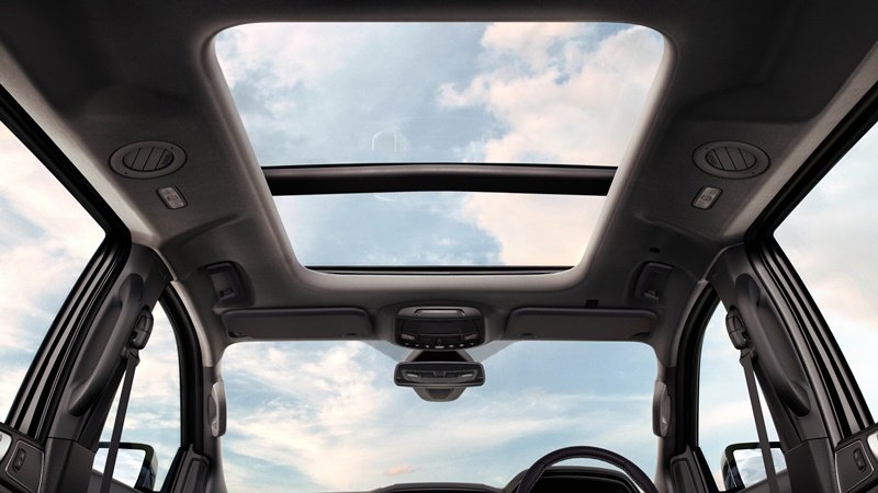 หลังคาไฟฟ้า Panoramic Moonroof หรือหลังคากระจกซึ่งมีขนาดครอบคลุมมากถึงเกือบครึ่งของพื้นที่หลังคาของฟอร์ด เอเวอเรสต์ ทำให้ผู้ขับขี่และผู้โดยสารสามารถเพลิดเพลินกับอากาศ วิวทิวทัศน์ และประสบการณ์อันน่าประทับใจจากด้านนอกโดยไม่ต้องลงจากรถ เพียงแค่กดปุ่มเปิดที่อยู่บริเวณด้านบนคอนโซลตรงกลางเหนือศีรษะ หลังคา Panoramic Moonroof ก็จะเปิดเองโดยอัตโนมัติ