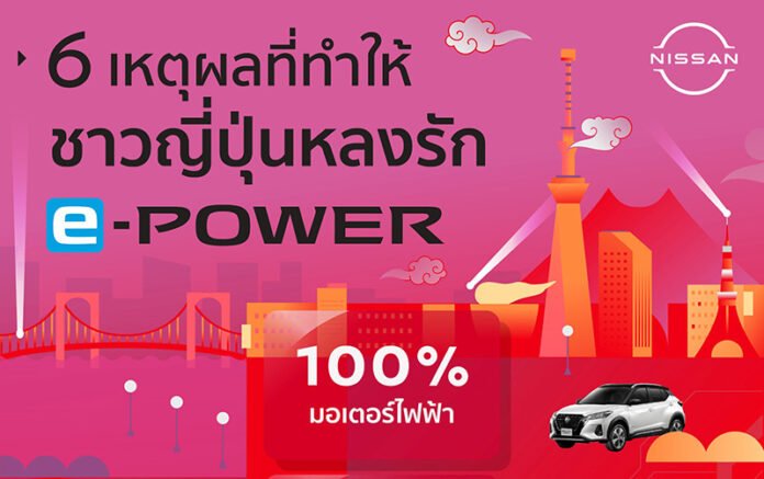 จากเหตุผลทั้งหกข้อว่าทำไมชาวญี่ปุ่นถึงหลงรักอี-พาวเวอร์ นิสสันขอเชิญชวนลูกค้าชาวไทย มาสัมผัสเทคโนโลยีที่น่าตื่นเต้น เพื่อรับประสบการณ์ความเร้าใจจากสมรรถนะการขับขี่ที่ยอดเยี่ยมและมีประสิทธิภาพซึ่งเป็นส่วนหนึ่งในการช่วยเดินหน้าประเทศไทยไปสู่อนาคตที่เป็นมิตรต่อสิ่งแวดล้อมและขับเคลื่อนด้วยพลังงานไฟฟ้า