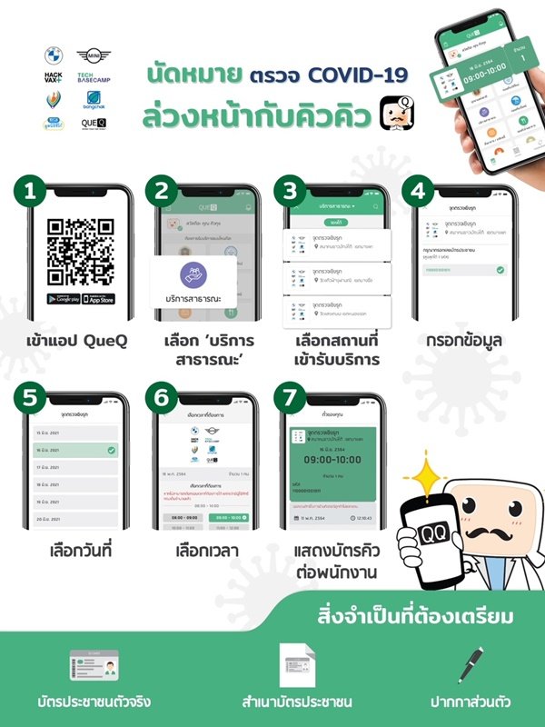 ด้วยความมุ่งมั่นในการดำเนินโครงการต่างๆ เพื่อส่งต่อความช่วยเหลือในช่วงวิกฤติ โควิด-19 ในประเทศไทย และสืบเนื่องจากการจัดกิจกรรมเพื่อสนับสนุนกองทุนชัยพัฒนาสู้ภัยโควิด-19 (และโรคระบาดต่าง ๆ) บีเอ็มดับเบิลยู กรุ๊ป ประเทศไทย HackVax Open Design บริษัท บางจาก คอร์ปอเรชั่น จำกัด (มหาชน) มูลนิธิซิโก้ QueQ กลุ่มออร์แกไนเซอร์ จิตอาสา และโรงพยาบาลมหาราชนครราชสีมา ได้ร่วมมือในการให้บริการตรวจหาเชื้อโควิด-19 ให้แก่ประชาชนในกรุงเทพฯ และจะขยายขอบเขตเพิ่มเติมในพื้นที่อื่นๆ เพื่อเป็นอีกทางเลือกในการตรวจเชิงรุกเพื่อร่วมยับยั้งและป้องกันการแพร่กระจายของเชื้อดังกล่าว