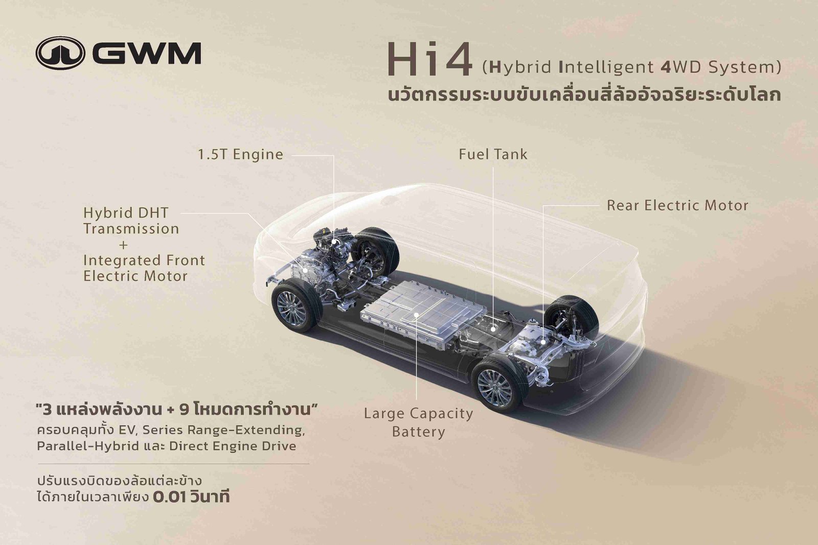 GWM WEY G9 มาพร้อม Hi4 (Hybrid Intelligent 4WD) เทคโนโลยีไฮบริดขับเคลื่อนสี่ล้ออัจฉริยะครั้งแรกของโลก หลังจากที่คว้ารางวัล Grand Prize ด้านวิทยาศาสตร์และเทคโนโลยี (S&T Award) ประจำปี 2025 จากสมาคมวิศวกรยานยนต์แห่งประเทศจีน (China SAE) ซึ่งเป็นครั้งแรกในรอบกว่า 30 ปีที่เทคโนโลยีขับเคลื่อนไฮบริดได้รับรางวัลสูงสุดนี้ และเป็นรางวัลทรงเกียรติที่สุดในอุตสาหกรรมยานยนต์จีน สะท้อนให้เห็นถึงความก้าวล้ำของเทคโนโลยี Hi4 ทั้งด้านสมรรถนะ ความปลอดภัย และความชาญฉลาดในการขับขี่ ถือเป็นความก้าวหน้าครั้งแรกของบริษัทระดับโลก เทคโนโลยี Hi4 ใช้นวัตกรรมเชิงสถาปัตยกรรม “3 แหล่งพลังงาน + 9 โหมดการทำงาน” ครอบคลุมทั้ง EV Mode, Series Range-Extending Mode, Parallel Hybrid Mode, Direct Engine Drive Mode และโหมดการฟื้นพลังงานจากทั้งเพลาหน้าและหลัง พร้อมระบบ ITVC (Intelligent Torque Vectoring Control) ที่สามารถปรับแรงบิดของล้อแต่ละข้างได้ภายในเวลาเพียง 0.01 วินาที ช่วยลดการลื่นไถลและเพิ่มการยึดเกาะบนพื้นผิวลื่น เช่น น้ำ ทราย หรือกรวด แม้แต่การเข้าโค้ง เพื่อมอบสมรรถนะการขับขี่และประสิทธิภาพที่เหนือกว่า ทั้งความเร็ว ความลื่นไหล ความเงียบ การประหยัดพลังงาน และความปลอดภัยในทุกสภาพถนน รองรับสภาพการขับขี่ที่หลากหลายในโลกแห่งการเดินทางที่ท้าทาย