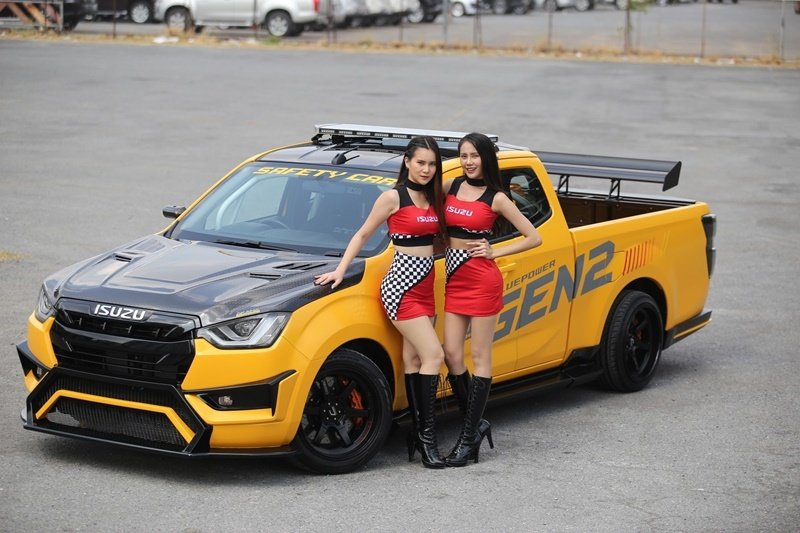 นอกจากนี้ยังได้เปิดตัวรถ “Isuzu D-Max 1.9 Ddi Blue Power Safety Car” สีเหลืองเด่น โดยออกแบบบอดี้พาร์ทภายนอกให้มีความสปอร์ต โฉบเฉี่ยว พร้อมติดตั้งฝากระโปรงหน้า ฝาปิดกระบะท้าย กระจกมองข้างทรงสปอร์ต สปอยเลอร์หลังคาด้วย Akana Carbon เท่อย่างลงตัวด้วยล้ออัลลอย PP Super Wheels ล้อหน้า 9.5 นิ้ว ล้อหลัง 10.5 นิ้ว พร้อมยาง Toyo Tire T-1S ยางหน้า 245/45R18 ยางหลัง 275/40R18 ดิสก์เบรก 4 ล้อจาก Run Stop แบบ 6 พ็อต ขนาด 355 มม. ชุดโหลดช่วงล่างจาก Hot bits เสริมความแรงด้วยกล่องอัจฉริยะจาก ECU Shop ให้กำลังสูงสุด 220 แรงม้า แรงบิดสูงสุด 510 นิวตัน-เมตร เพื่อตอกย้ำความเป็นผู้นำด้านสมรรถนะและความแรง ถ่ายทอดกำลังเครื่องยนต์ได้เต็มประสิทธิภาพด้วยชุดคลัชท์ BRC และท่อไอเสีย Nitto ตลอดจนอุปกรณ์เพื่อความปลอดภัยครบครัน เช่น Roll Cage เบาะรถแข่ง Sparco เข็มขัดนิรภัย HC Group พวงมาลัย Sparco เป็นต้น การแข่งขันในปีนี้ได้รับเกียรติจาก คุณธนภณ ทองเจือ (พีท) นักแสดงและนักแข่งรถชื่อดัง คุณแอนด์ดรูว์ โคร์นิน นักแสดงลูกครึ่งไทย-อังกฤษ และคุณทอม–นิรุทธ์ สุจริต พิธีกรหนุ่มมากความสามารถ ที่ยังคงเข้าร่วมการแข่งขันเช่นเดิม นอกจากนั้น ขอแสดงความยินดีกับคุณณัฐพงศ์ เหลาคม ที่ได้รับรางวัลรถปิกอัพ “อีซูซุดีแมคซ์ 1.9 ดีดีไอ บลูเพาเวอร์” จากการคว้าแชมป์การแข่งขัน Isuzu One Make Race 2020 ที่ผ่านมา และปีนี้ก็ยังเข้าร่วมแข่งขันเพื่อป้องกันแชมป์อีกด้วย”